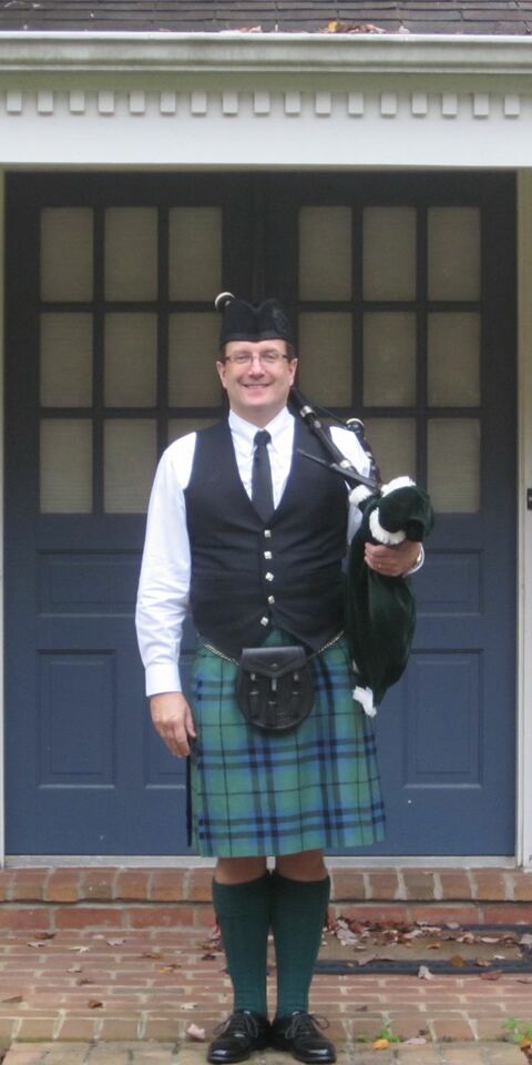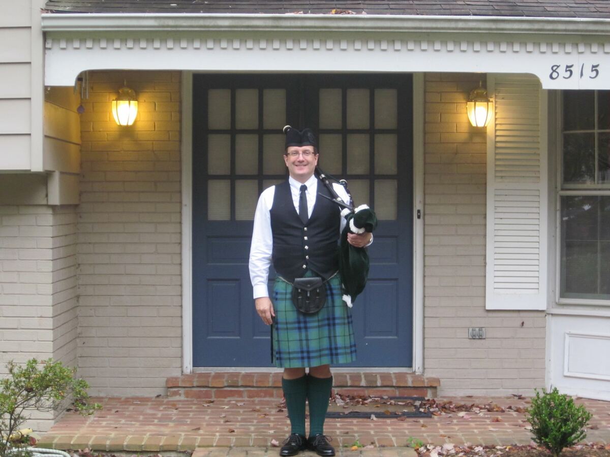 I am available for piping events of all types: parties, weddings, memorials, church services, etc. My attire includes the Black Watch tartan kilt, Prince Charlie jacket, Glengarry (hat), sporan (pouch) and ghillie brogues (shoes). My repertoire includes over 100 tunes and I will consider requests of new tunes as well, although one must realize the Great Highland Bagpipes, being one of the older Western musical instruments, is only built to play 9 notes. So, not every musical piece fits well on the Highland pipes.